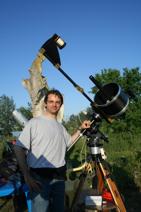I myself had long been willing to give this undoubtedly “unconventional” telescope a go, to see for myself (and with my camera ) if it was really up to its producer’s claims and outstanding imaging results. The Ostellato Star Party made a terrific opportunity that I would never pass up. There, Paolo was kind enough to grant me full use of his telescope (a 315-mm model, serial number 071001) for a night-long imaging session on Saturday, May 10th, 2008.